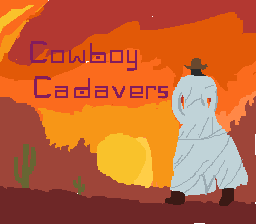 Cowboy Cadavers sprouts from the WesternMiniJam Game Jam. You play as a cowboy stuck in a desolate mid-western civilization. Everything has gone wrong. You're down to your last bullets, last lanterns, and everywhere you go you're surrounded by zombies.